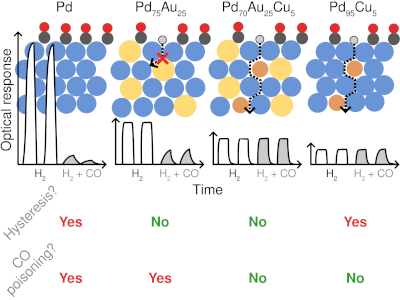 Competing adsorption of H and CO on Pd-alloy surfaces: Mechanistic insight into the mitigating effect of Cu on CO poisoning